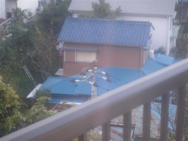 View of Chris's neighborhood from his house. Note the hawks (or small eagles) on the poles near his back window.