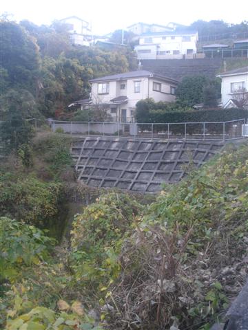 Retention walls are used to keep the hillside from collapsing onto houses. Most of them have drain pipes to allow water through. Retention walls of various materials, colors, and designs can be found all over the place.