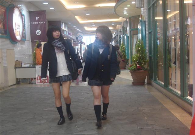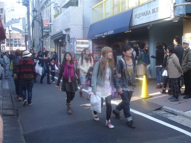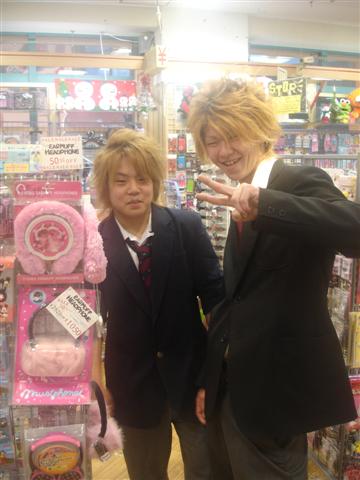 Note the blonde spikey hair that many Japanese guys find fashionable. Women generally choose a more conservative brown or auburn hair color.