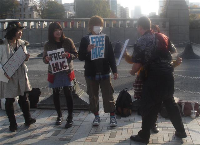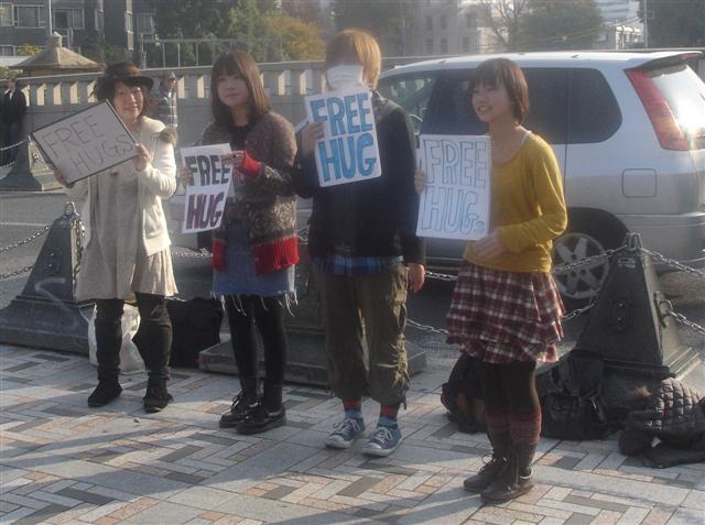 For fun, these young folks were giving out free hugs. Mimi and I collected our free hugs, of course.
