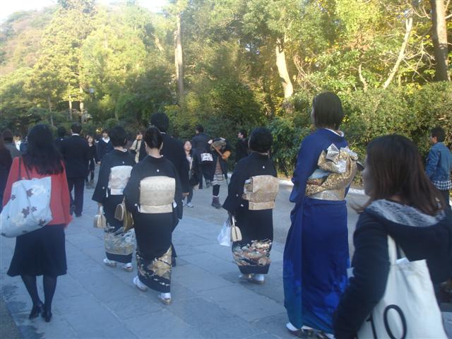 A bride and groom in semi-traditional garb. I know it was only semi-traditional because we saw a wedding at the one of the shrines wear the bride was obviously decked out in full traditional clothing and makeup.