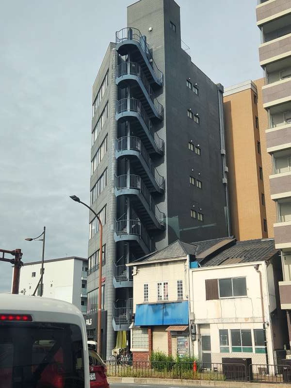 Almost all residential buildings had stairs open to the elements if they were not sandwiched between two other buildings. They had elevators, of course, but I'm curious why so many stairs are outside.