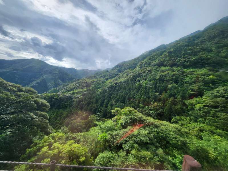 I didn't take pictures because it was raining and my phone lens was fogging up. Also, I didn't want to drop my phone on hard rocks, into a puddle, or bounce to someplace I couldn't reach. However, you can check out these photos of Shiratani Unsuikyo Ravine - scroll almost halfway down until you see deer and monkeys (which I did see in the ravine). The pics of the ravine start where it says "Yakushima Day 2". It includes shots from the Princess Mononoke movie for comparison. See the last ravine photo of someone sitting on Taikoiwa Rock overlooking the valley? I was there and that is exactly what it looked like. Now imagine those mountains and trees stretching left to right over 180 degrees. Inspirational, indeed.